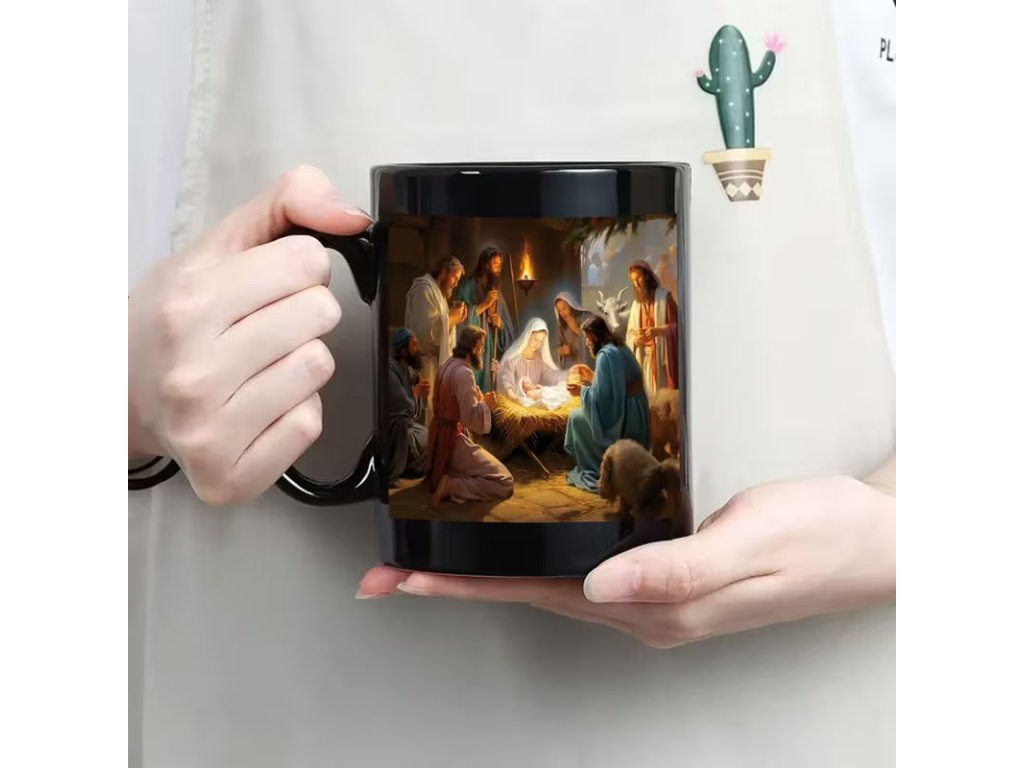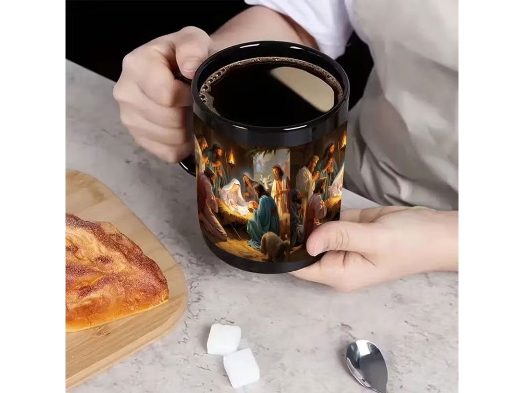 Glazovaný porcelánový hrnek s motivem Ježíše je krásný tematický dárek pro milovaného věřícího člověka. Pro teplé i studené nápoje.