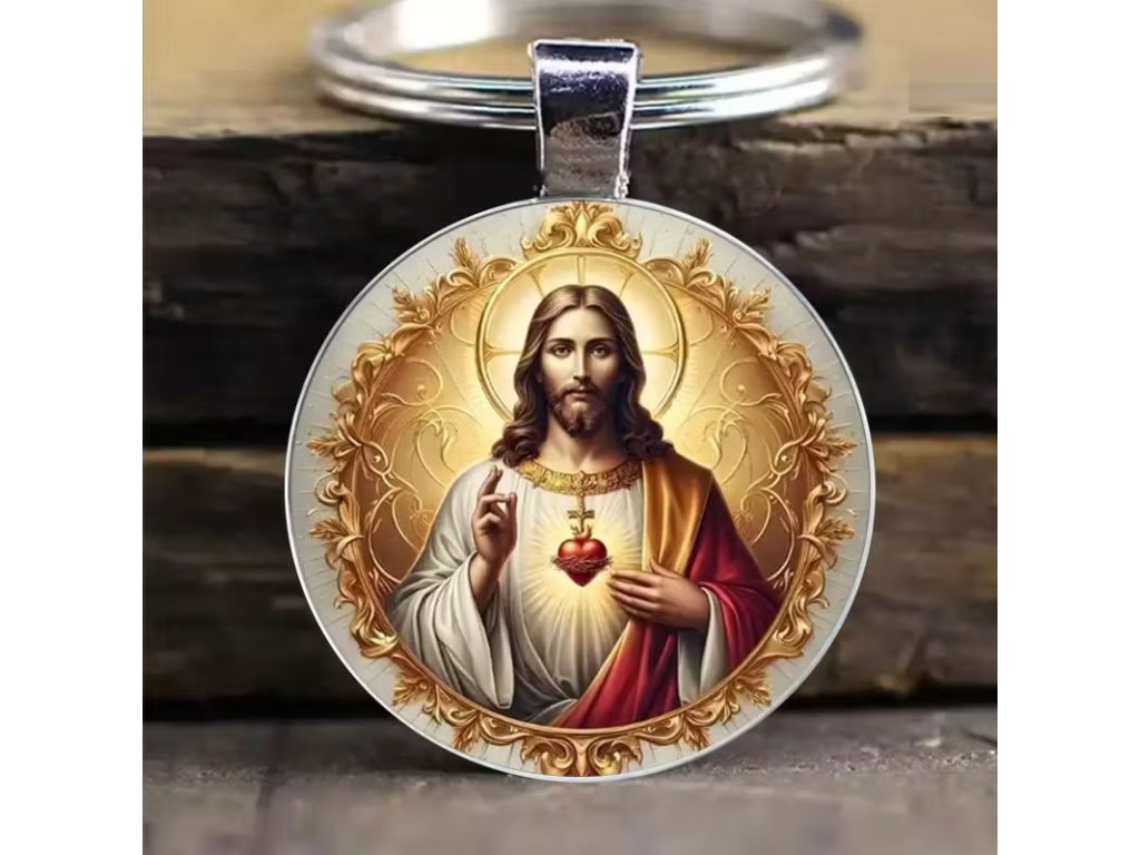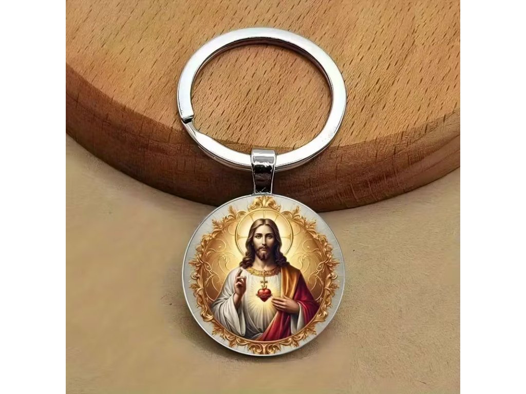 Tematický přívěsek na klíče kulatý - Ježíšovo srdce